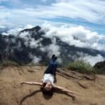 Step 3. 吐氣時,左手往上、右腳往下延伸,吸氣回來,換右手往上、左腳往下延伸