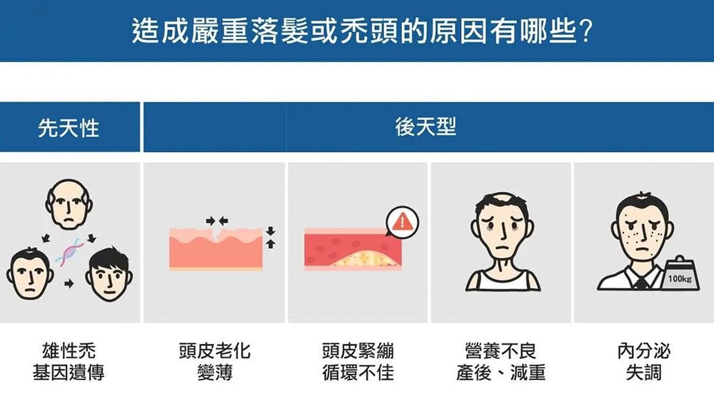 2.忽略賀爾蒙影響:雄性禿與DHT賀爾蒙有關,若未同時控制根本原因,即使植髮成功,其他區域仍可能持續掉髮。