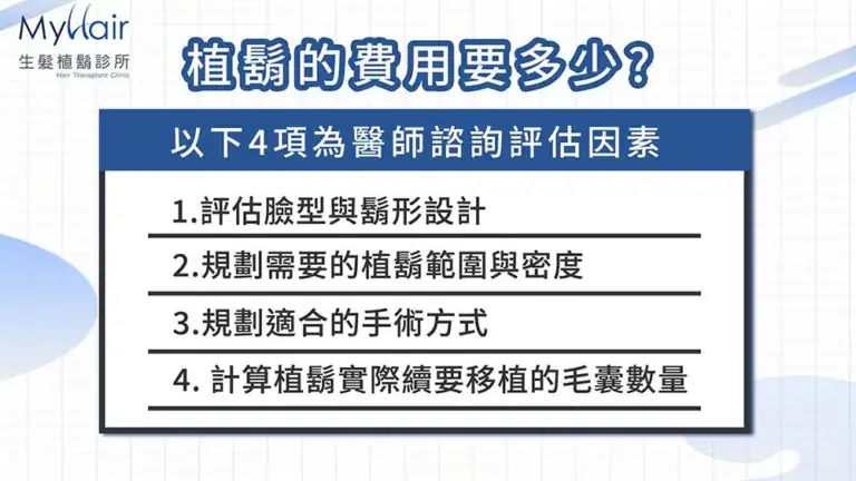 圖說:台北MyHair生髮植鬍診所-劉彥均醫師 植鬍費用4項評估因素